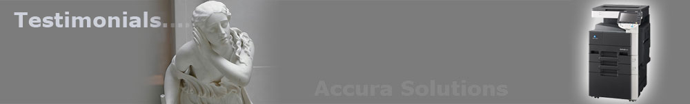 | "We are very happy with the services provided by Accura solutons.we have always been getting Prompt Services whenever Required.We thank you for the excellent support and would like you continue the same future also. Thanking you." |
